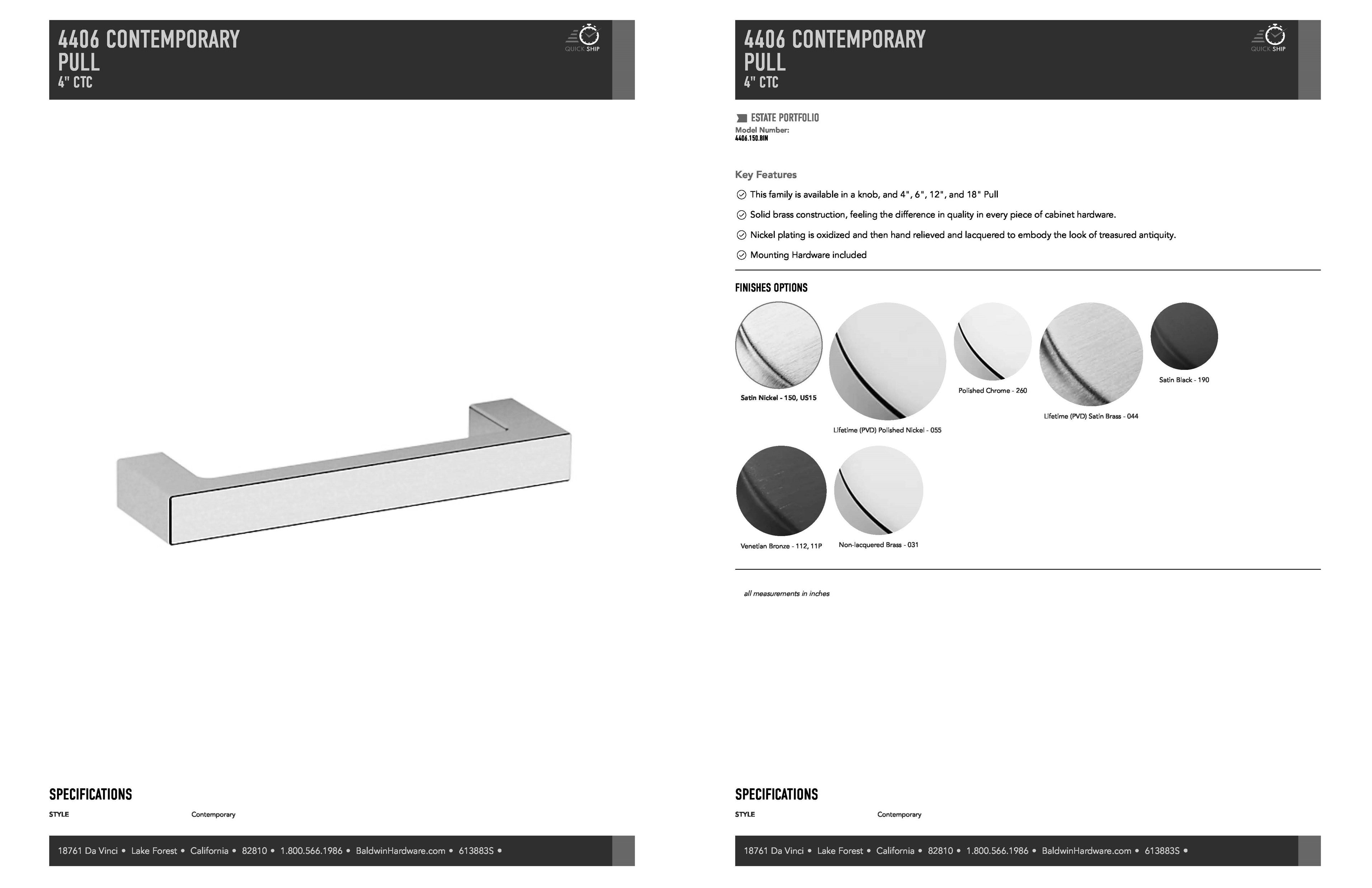 4406, Contemporary Pull - 4" CTC x 1.25" p., BH