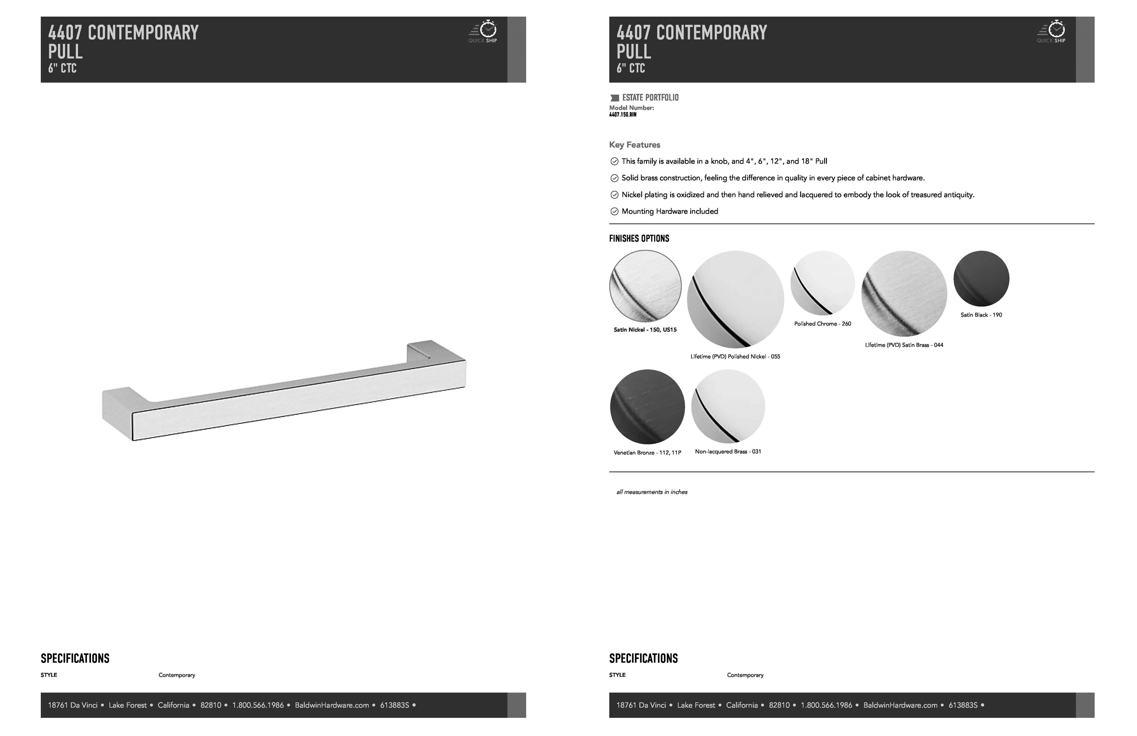 4407, Contemporary Pull - 6" CTC x 1.25" p., BH
