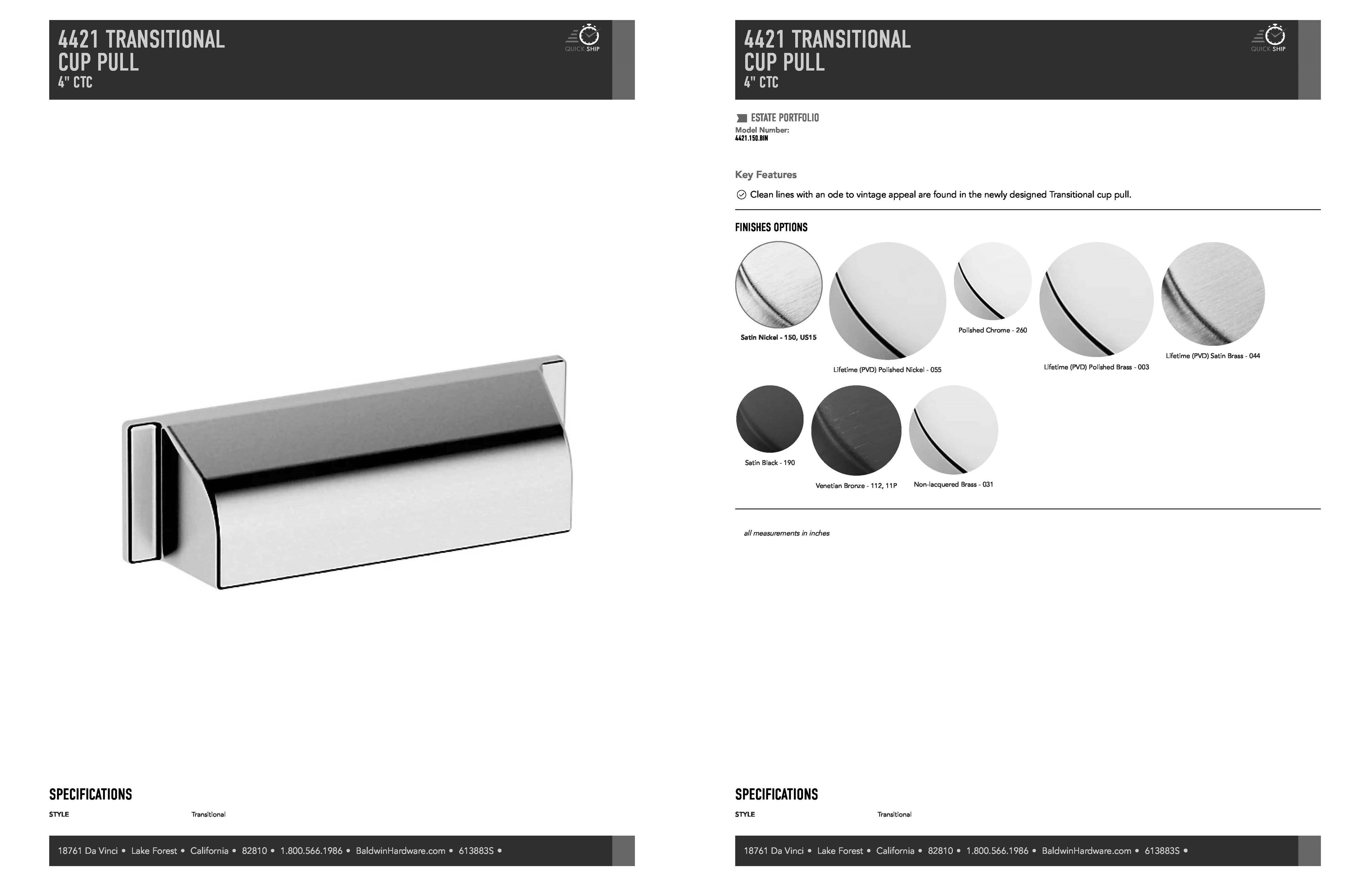 4424, Cup Pull - 4" CTC x 1.2" p., BH
