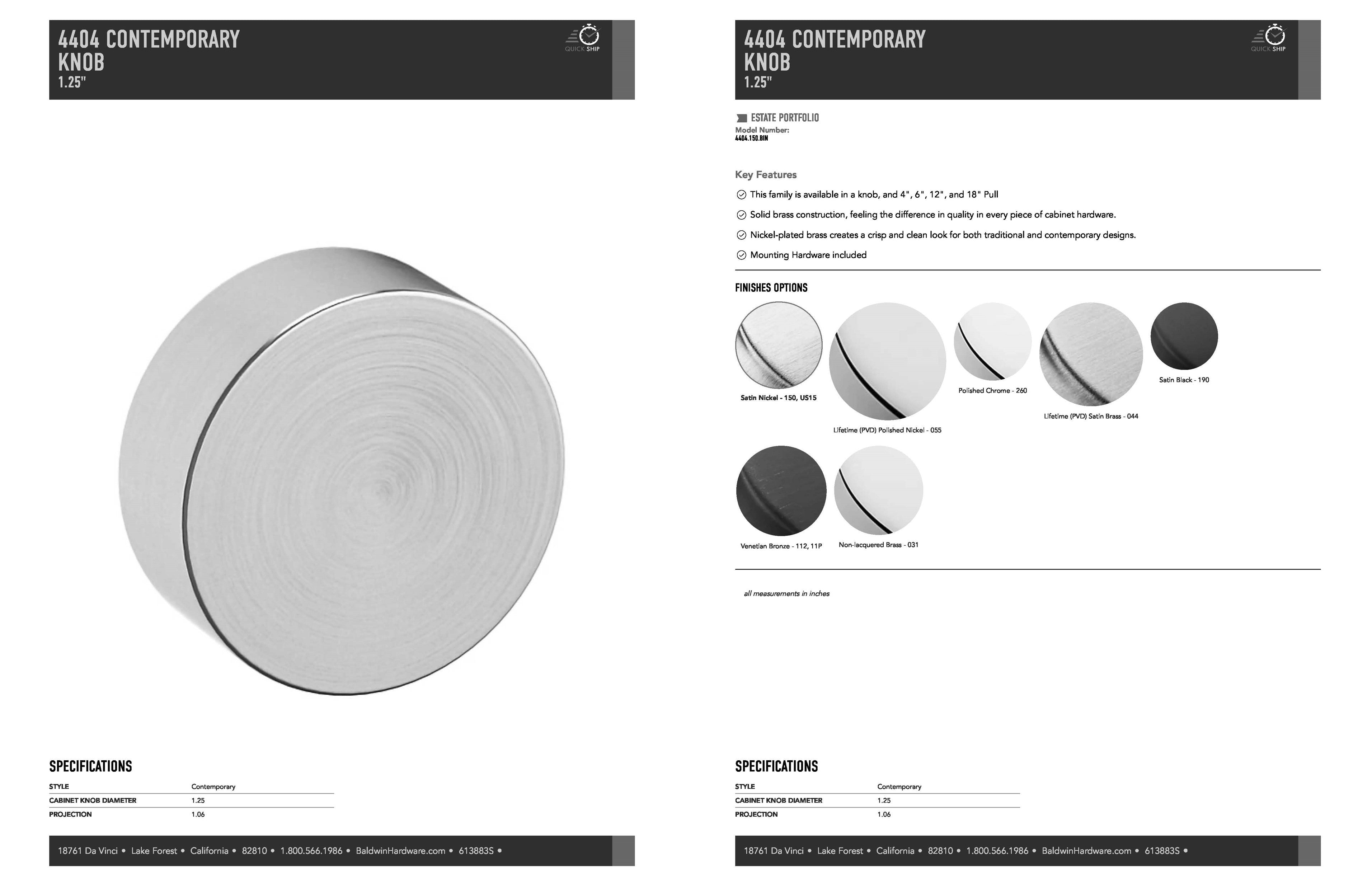 4404, Contemporary Knob - 1.25" d. x 1.06" p., BH