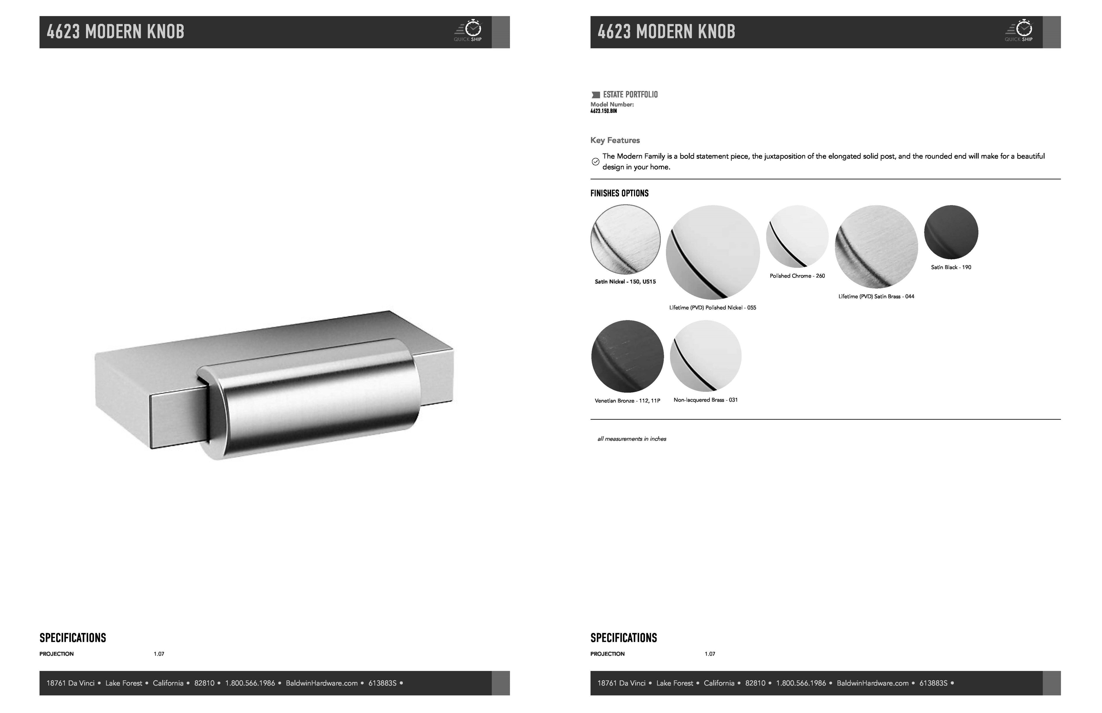 4623, Modern Knob - 1.5" d. x 1.07" p., BH