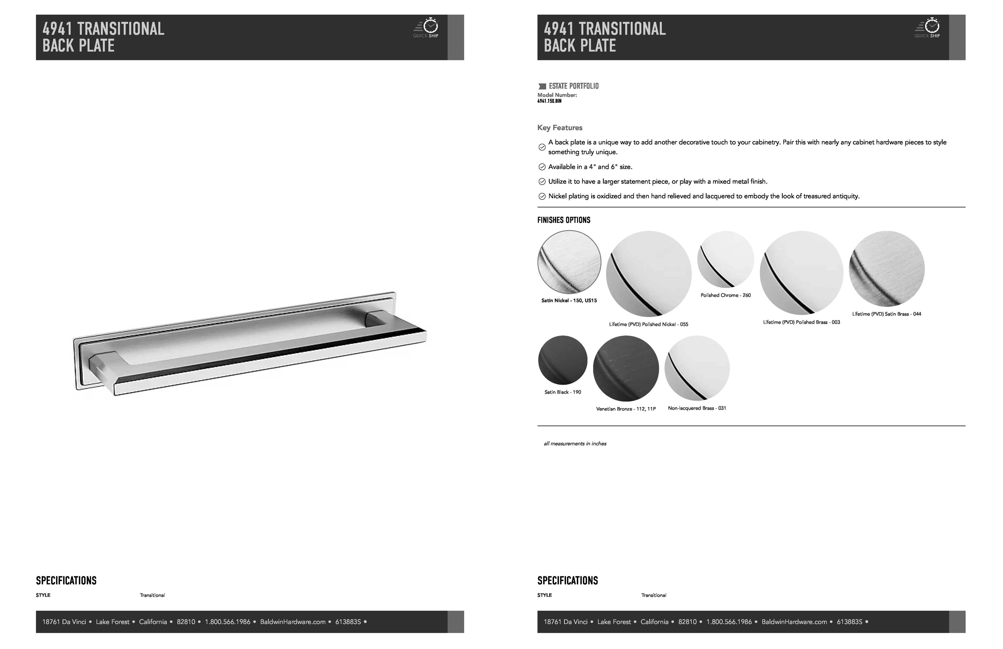 | Style: Modern | Category: | Sub Category: Backplate | Material: Brass | Size: 6" CTC | Made in USA | Usually Ships 2-3 Weeks
