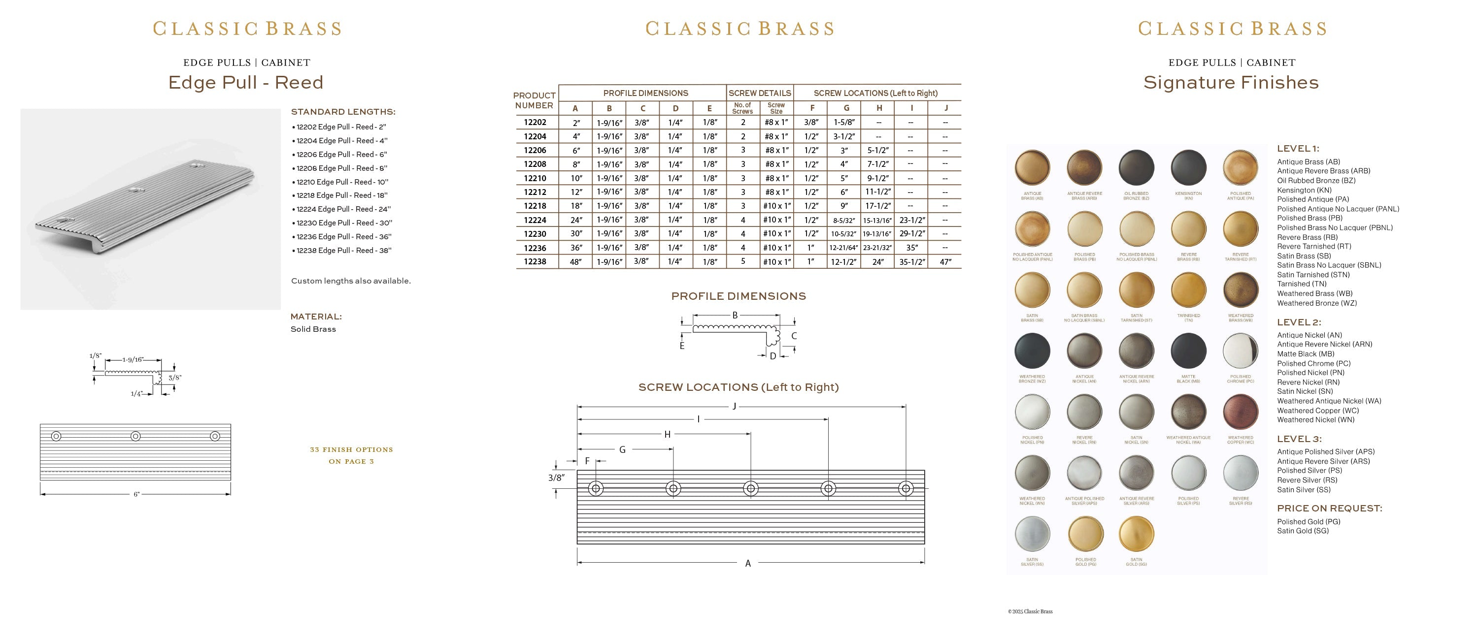 Edge Pulls | Style: Modern | Category: Cabinet | Sub Category: Pull - Edge | Material: Brass | Size: 4" x 1-1/2" oa | Made in USA | Usually Ships