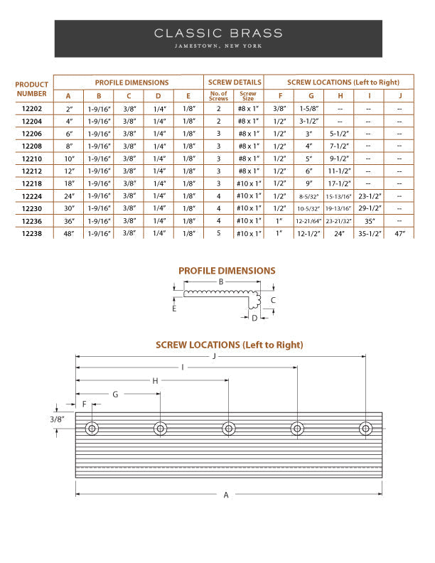 12206, Classic Brass Edge Pull - Reed - 6" x 1-1/2" oa, Edge Pulls Collection