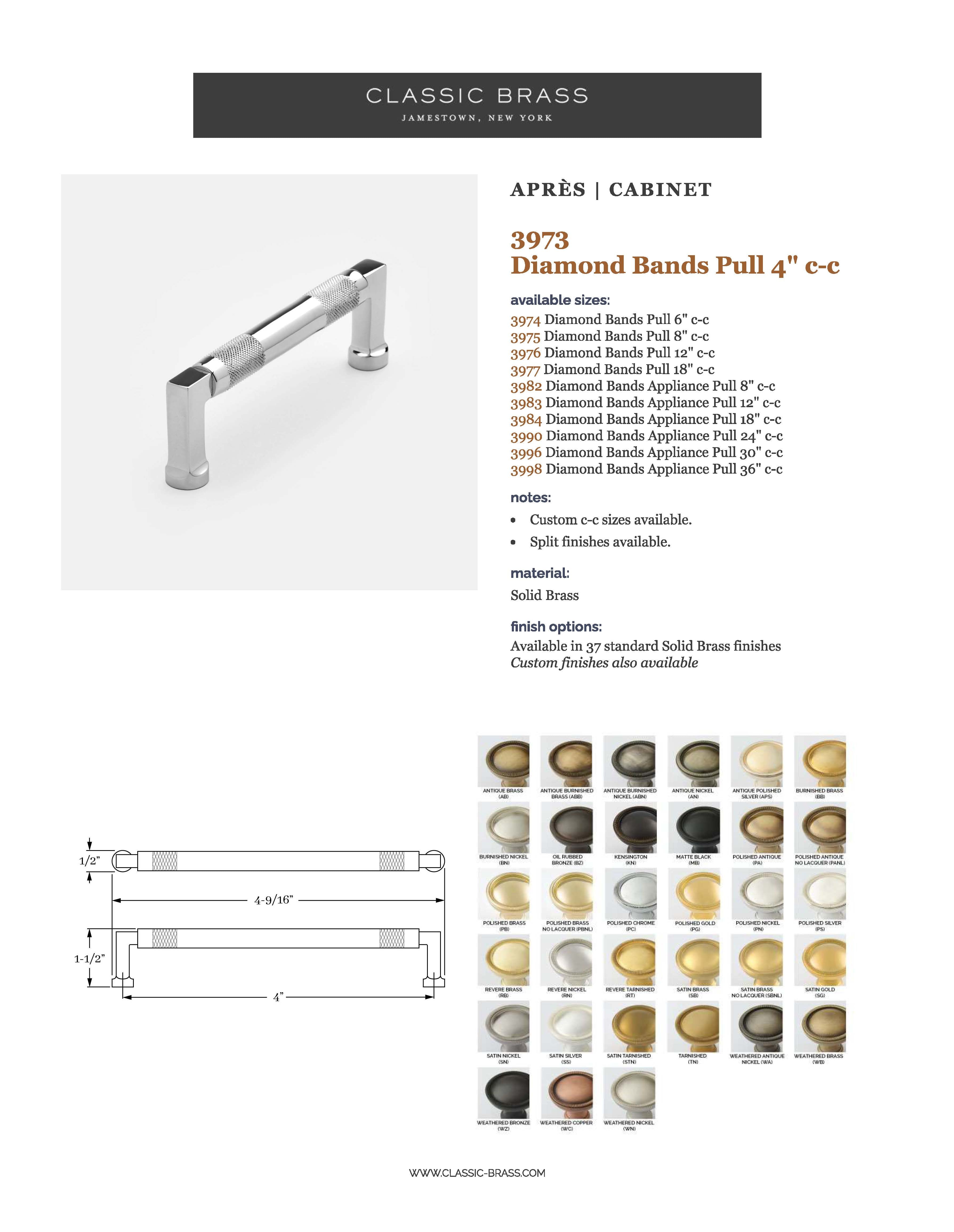 3973, Pull - Diamond Bands - 4" c-c, Apres Collection