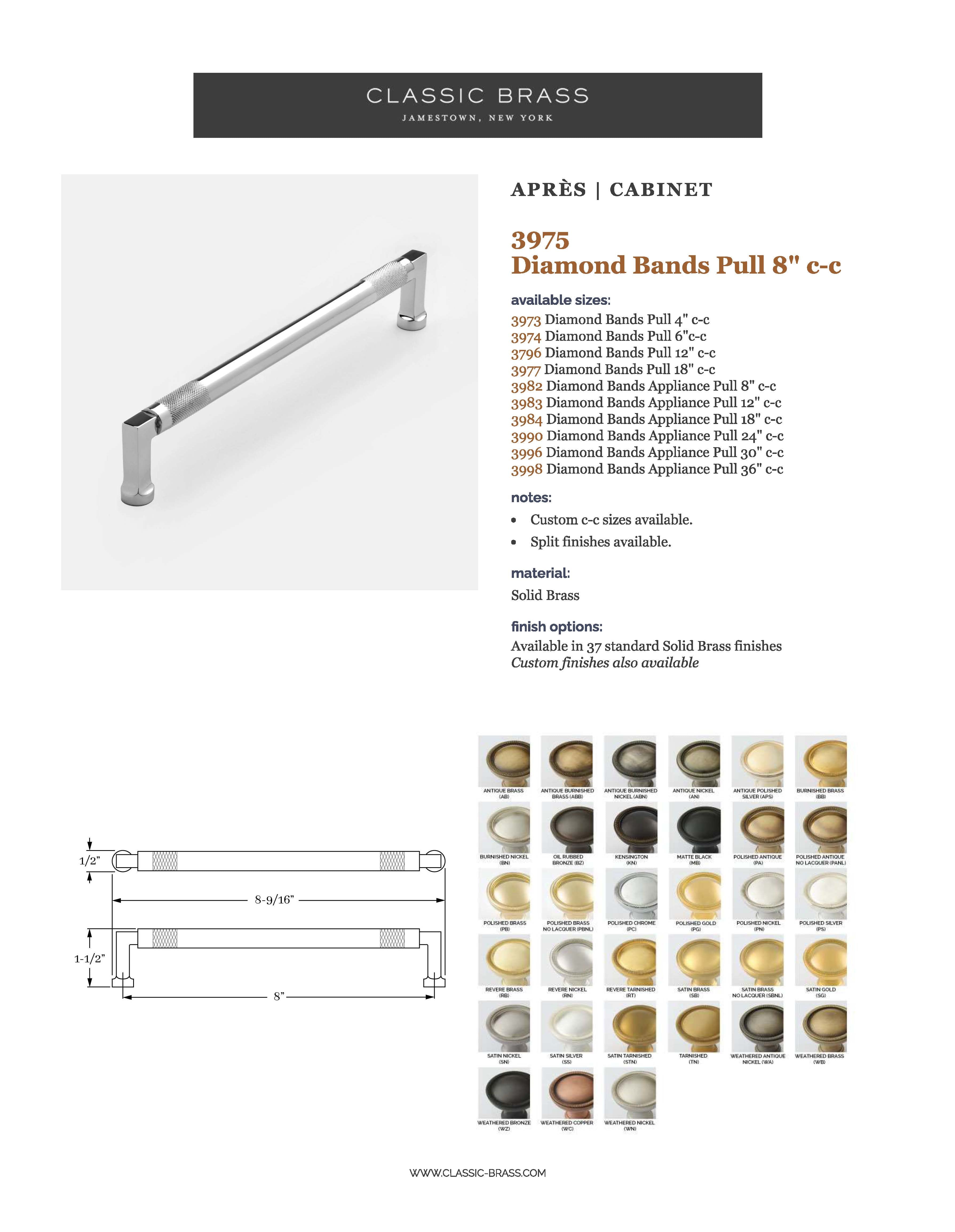 Apres Collection | Style: Modern | Category: Cabinet | Sub Category: Pull | Material: Brass | Size: 8" c-c | Made in USA | Usually Ships
