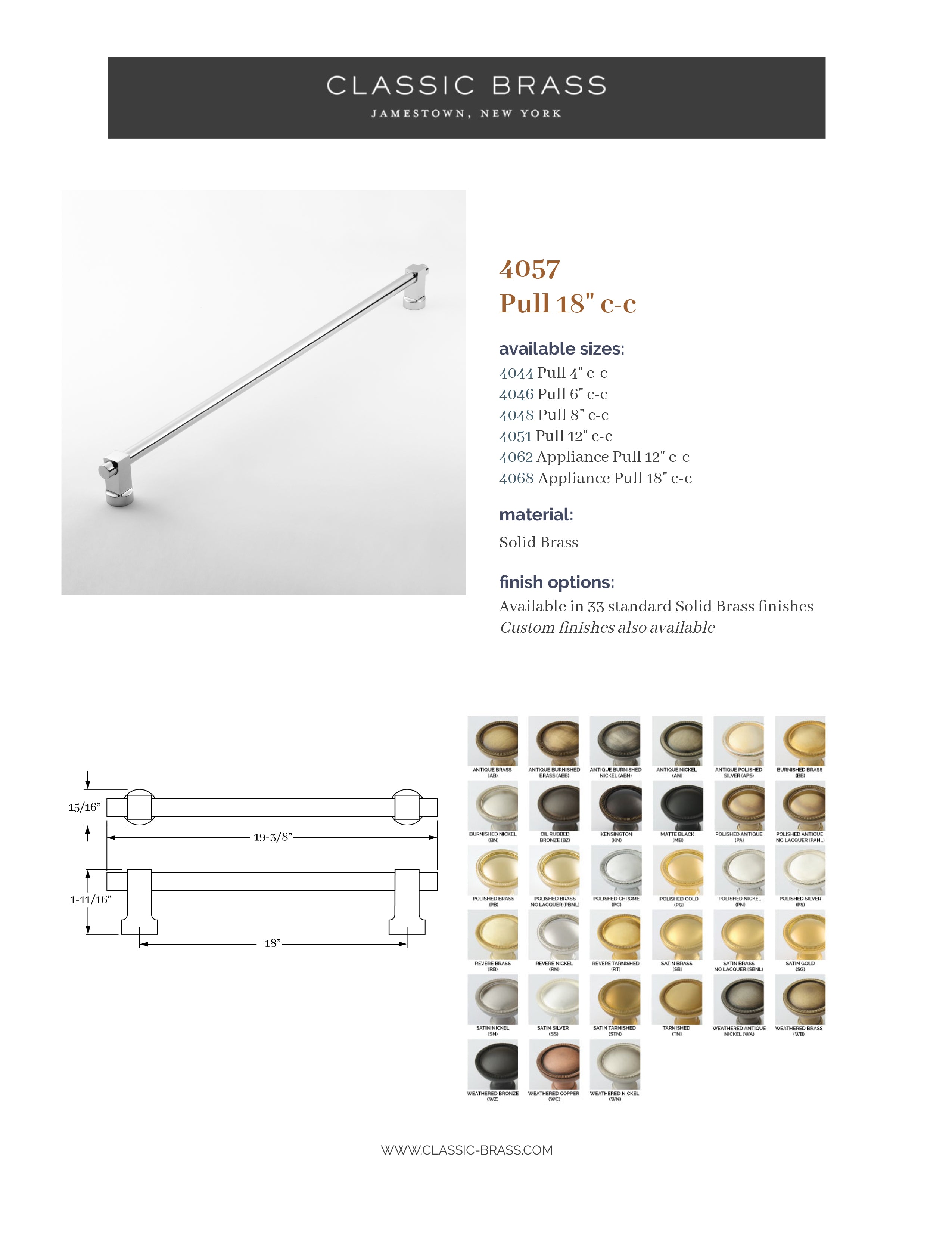 Reverie Collection | Style: Modern | Category: Cabinet | Sub Category: Pull | Material: Brass | Size: 18" c-c | Made in USA | Usual Ship Time
