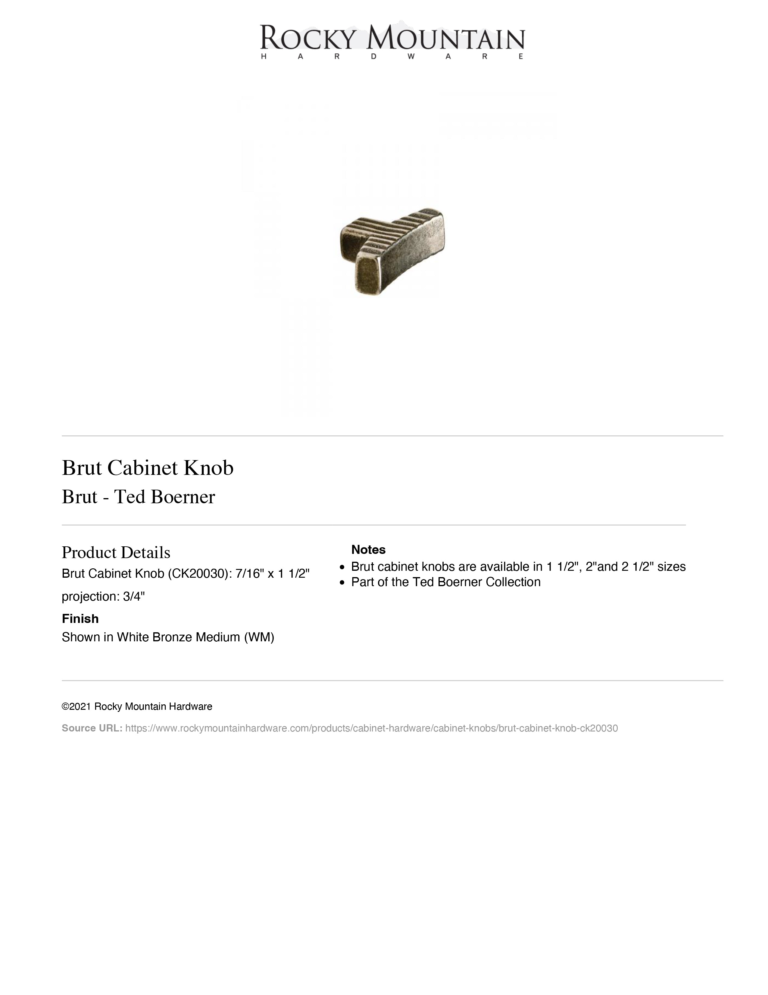 Ted Boerner Collection | Style: Rustic | Category: Cabinet | Sub Category: Knob | Material: Bronze | Size: 7/16" x 1-1/2" | Usually ships: 8-10 weeks | Made in USA