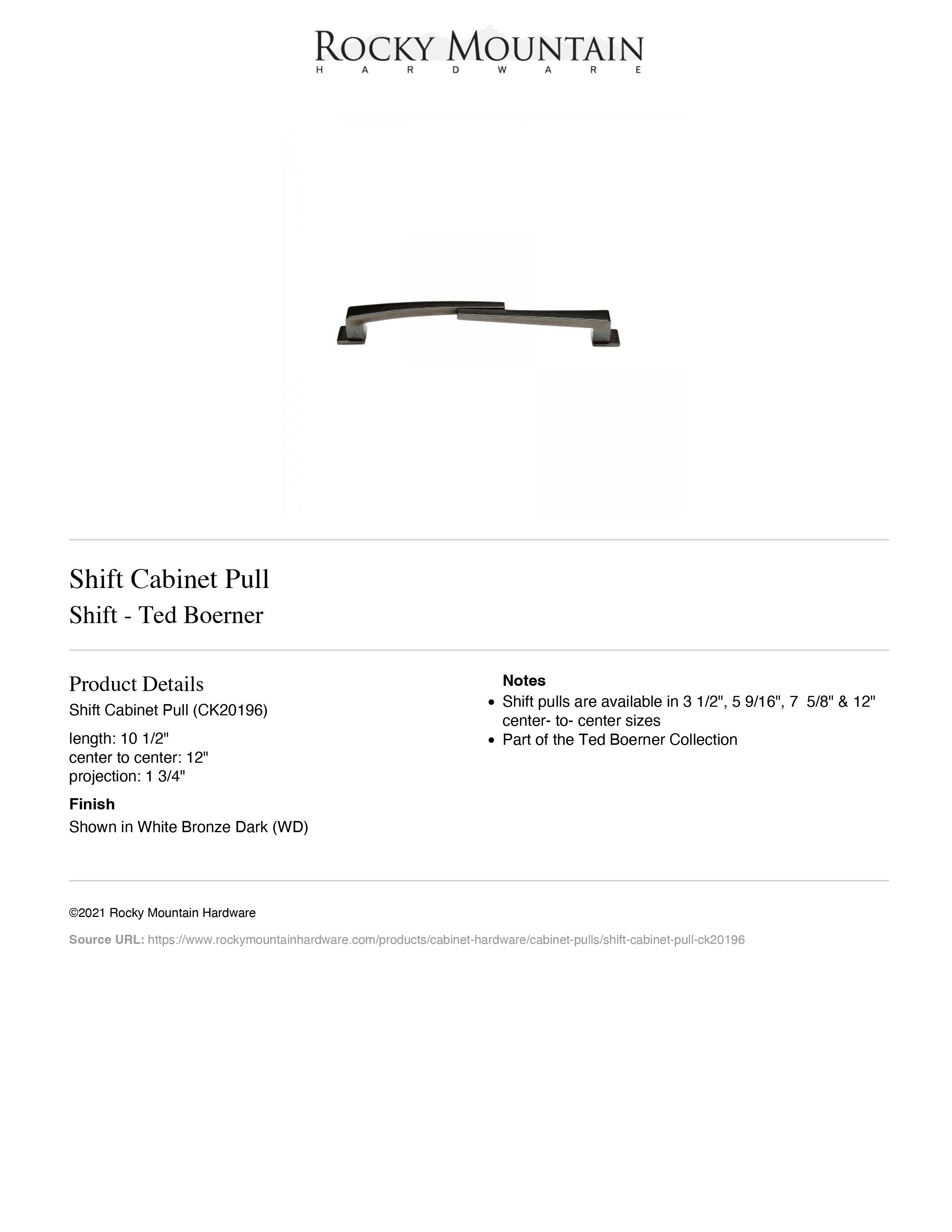 CK20196, Shift Pull - 10-1/2" c-c, Ted Boerner Collection