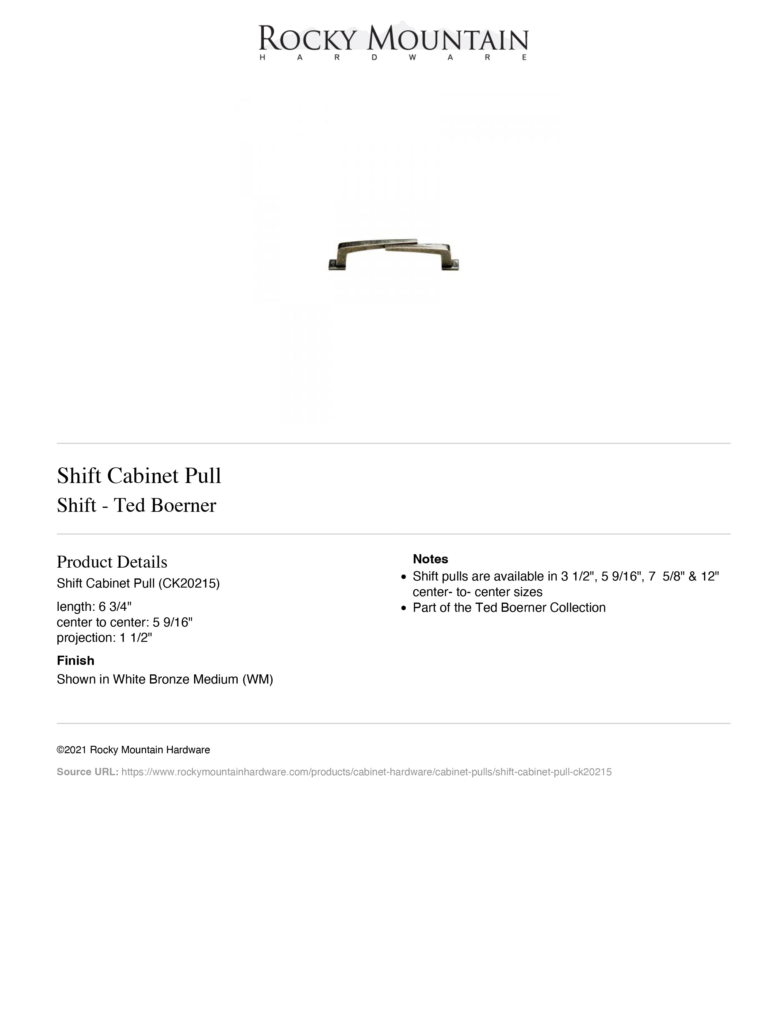 Ted Boerner Collection| Style: Rustic | Category: Cabinet | Sub Category: Pull | Material: Bronze | Size: 5-9/16" c-c | Usually ships: 8-10 weeks | Made in USA