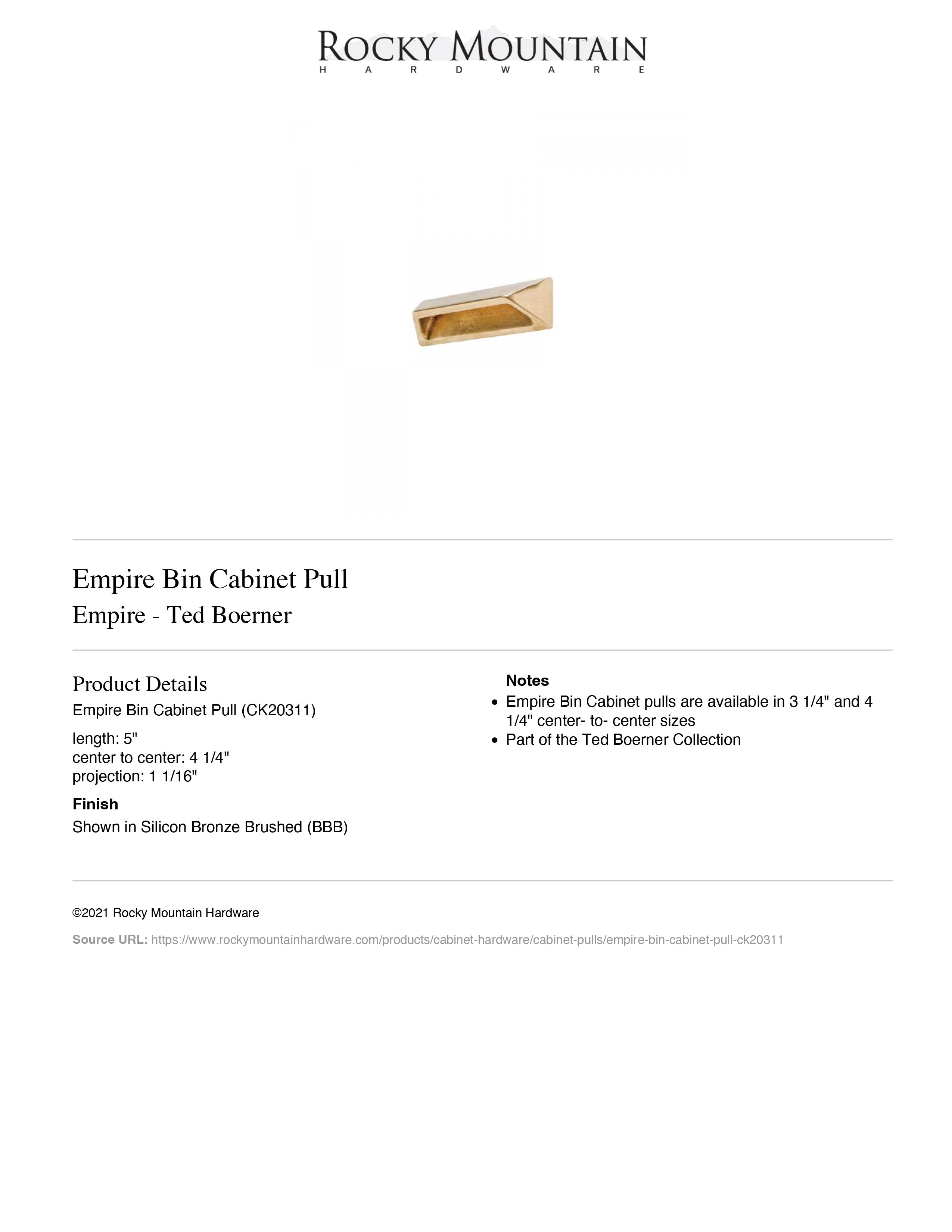 Ted Boerner Collection| Style: Rustic | Category: Cabinet | Sub Category: Pull | Material: Bronze | Size: 4-1/4" c-c | Usually ships: 8-10 weeks | Made in USA