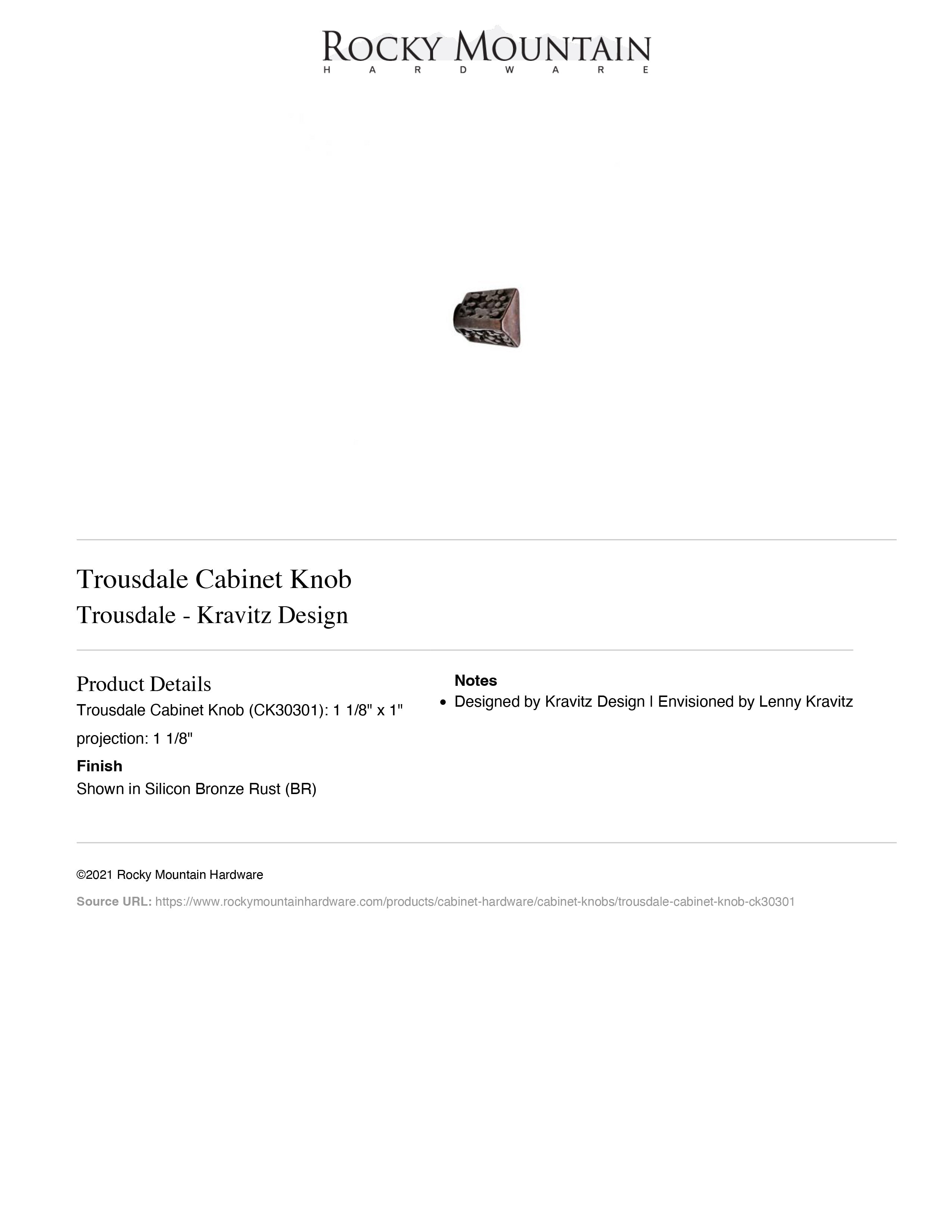 Kravitz Design Collection| Style: Rustic | Category: Cabinet | Sub Category: Knob | Material: Bronze | Size: 1-1/8" x 1" | Usually ships: 8-10 weeks | Made in USA