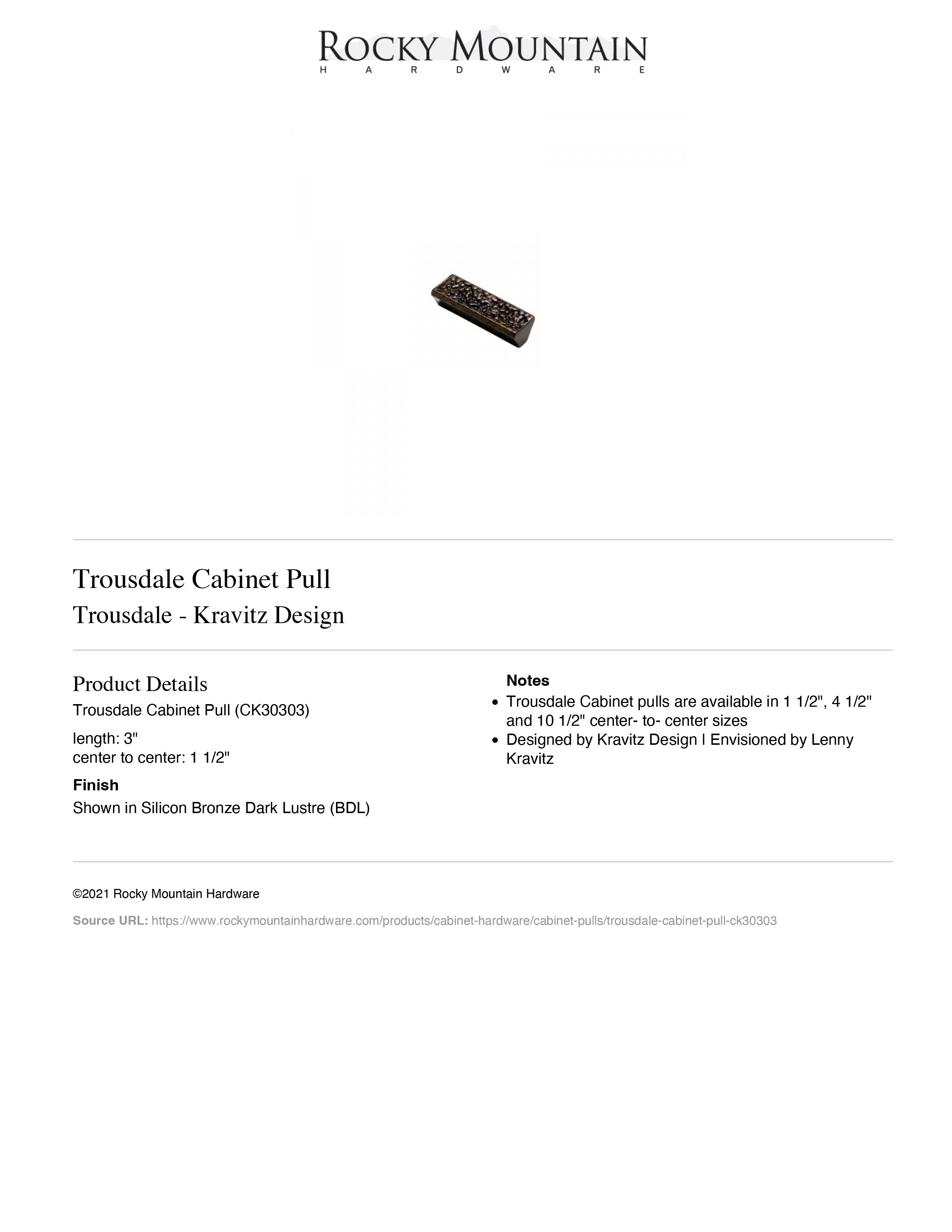 Kravitz Design Collection| Style: Rustic | Category: Cabinet | Sub Category: Pull | Material: Bronze | Size: 1-1/2" c-c | Usually ships: 8-10 weeks | Made in USA