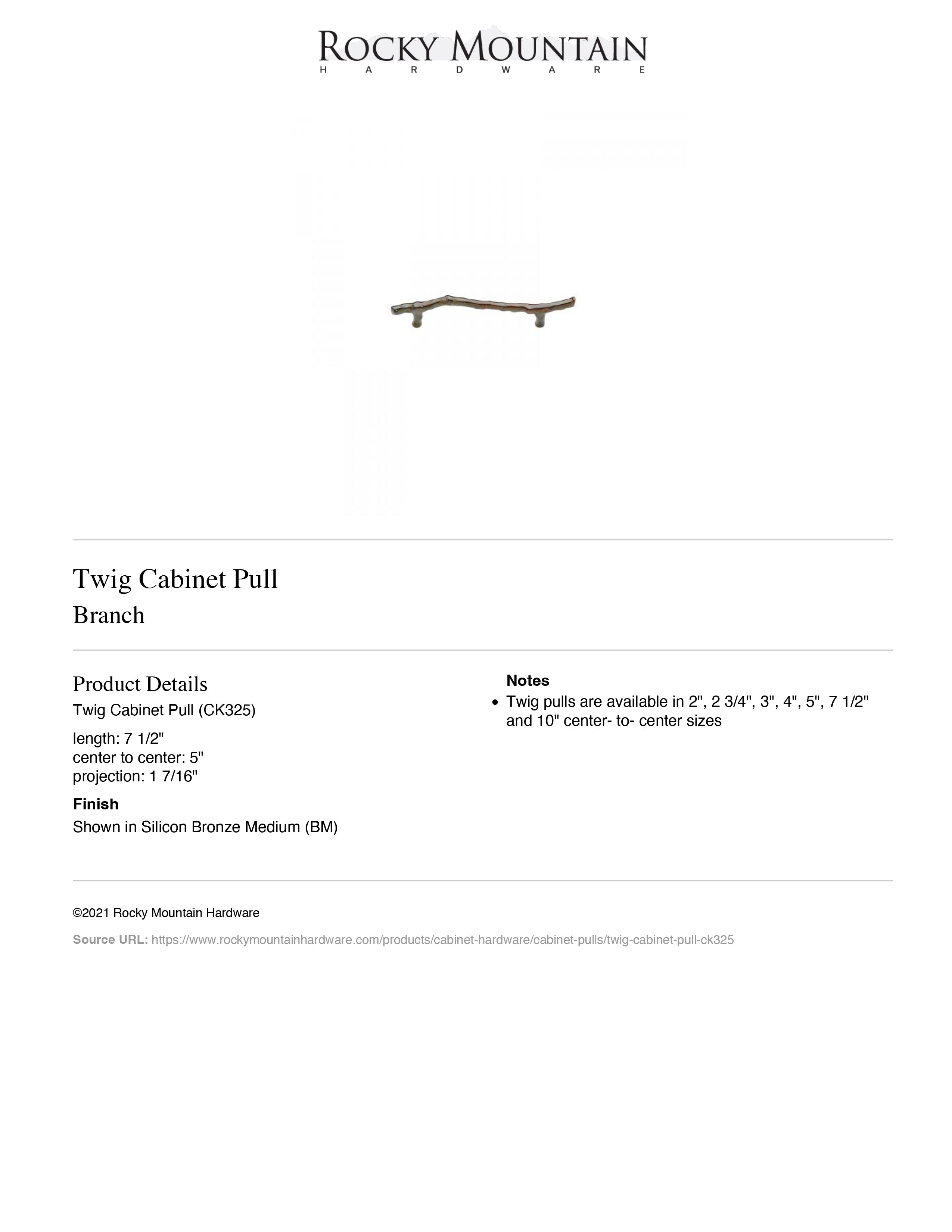 | Style: Rustic | Category: Cabinet | Sub Category: Pull | Material: Bronze | Size: 5" c-c | Usually ships: 8-10 weeks | Made in USA