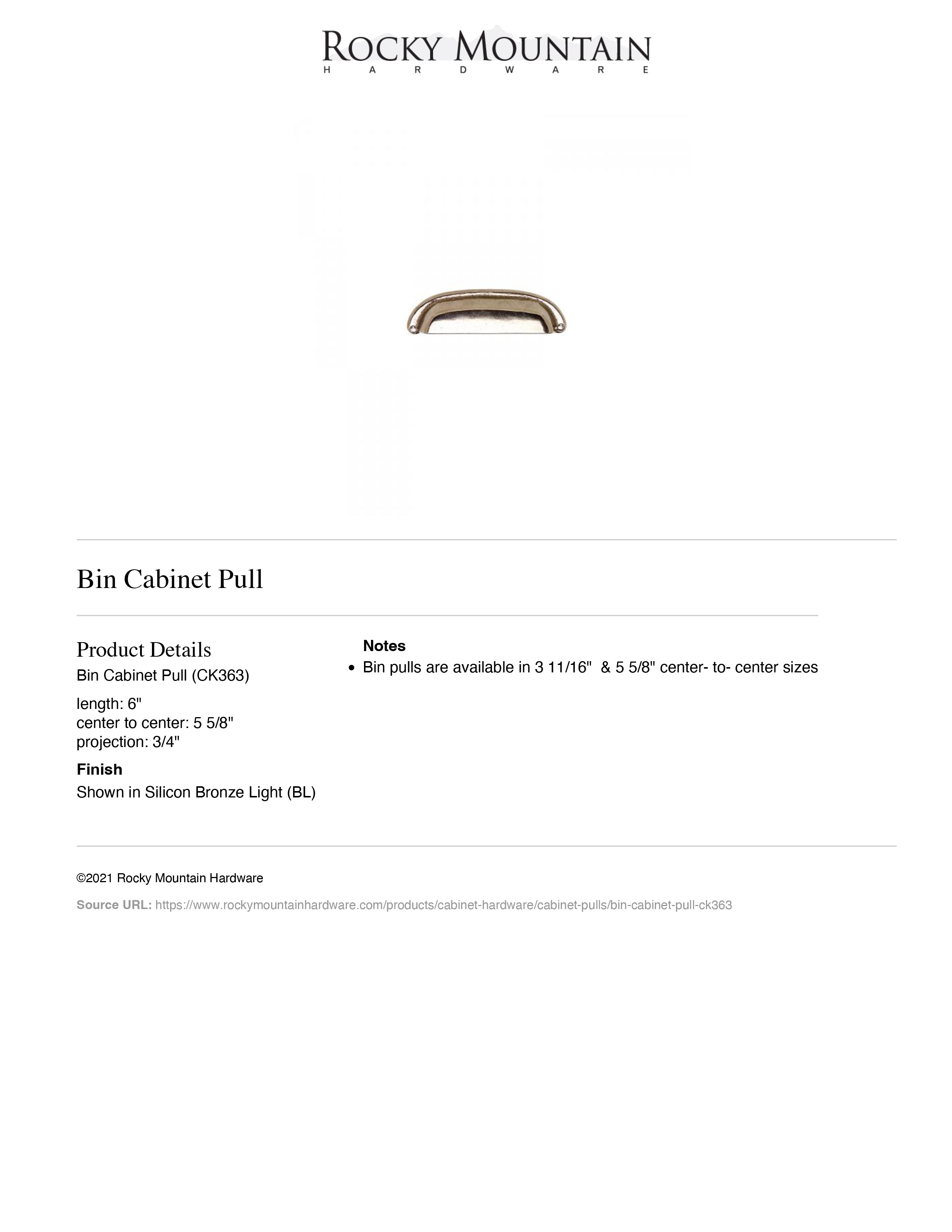 CK363, Bin Pull - 5-5/8" c-c