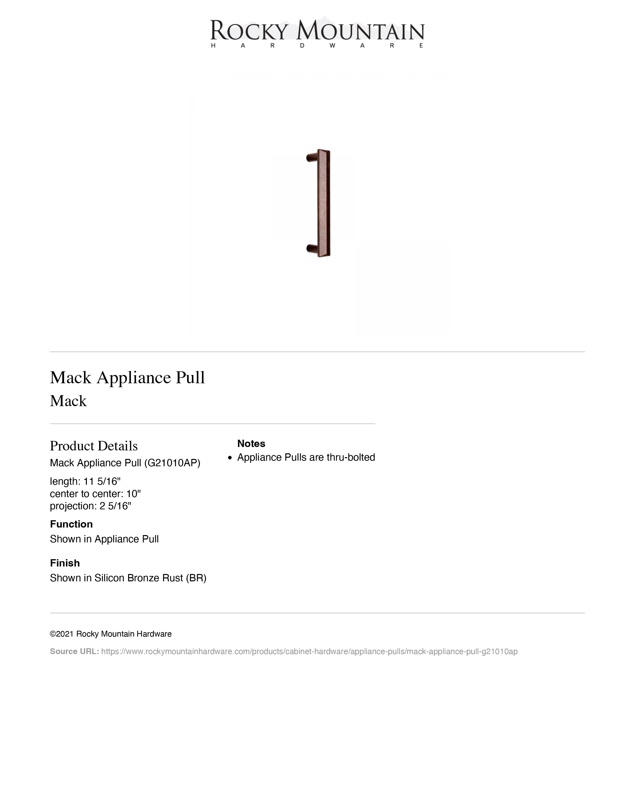 | Style: Rustic | Category: Cabinet | Sub Category: Pull - Appliance | Material: Bronze | Size: 10" c-c | Usually ships: 8-10 weeks | Made in USA